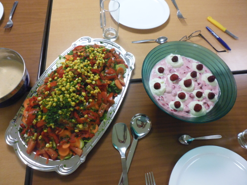 In Hotels ist in der Regel die Auswahl beim Frühstück sehr vielfältig und frisches Obst und Nüsse gibt es eigentlich immer. Ich nehme mir gemalenes Getreide mit und eingeweicht gehts damit zum Frühstücks-Buffet. Ich hatte bisher noch nie Probleme geeignete Zutaten zu finden. Honig steht auch oft zur Auswahl und mit von zu Hause mitgebrachtem Knäckebrot und Butter sollte die 1. Mahlzeit des Tages gesichert sein.